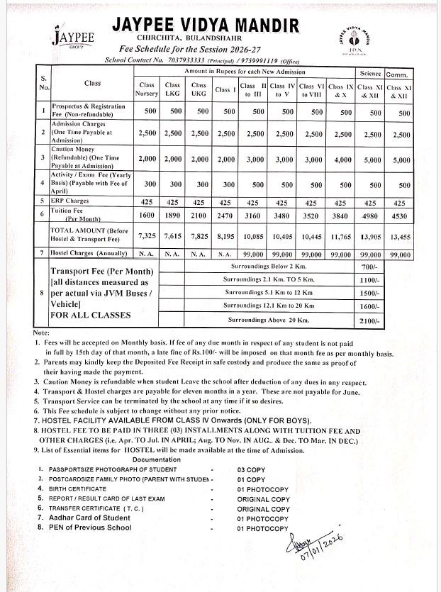Your child is a very special individual who needs a secure, caring, happy and challenging environment in which to grow. A child’s natural curiosity to explore his/her world gives teachers the basis on which to build learning experiences that will provide a solid foundation for these citizens of 21st centuries. Jaypee Vidya Mandir Chirchita Bulandshahr recognises the importance of early years of schooling. For parents, it is necessary that your child receives an excellent start to schooling in a family atmosphere. Jaypee Vidya Mandir Chirchita Bulandshahr provides this environment.